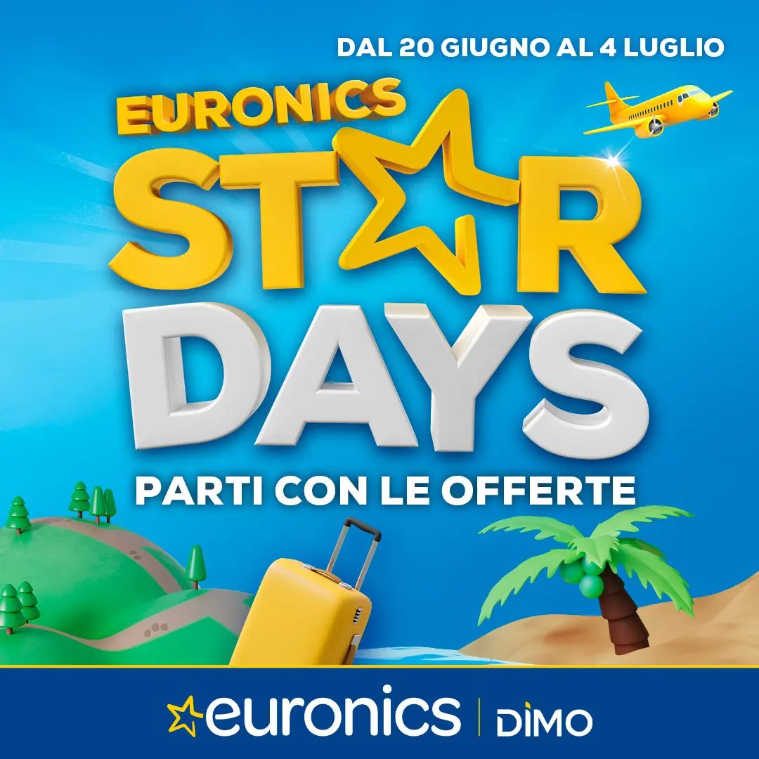 Da Euronics sono iniziati gli Star Days: fino al 4 luglio approfitta delle nostre incredibili offerte e parti con la migliore tecnologia! Ti aspettiamo in negozio o su euronics.it